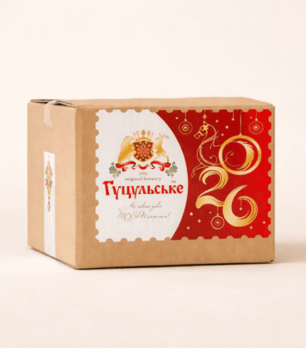 Входить: Гуцульське Шафран, Гуцульське Медове, Гуцульське Ягідне, Гуцульське Темне (4 пляшки по 1л) + 2 бокали